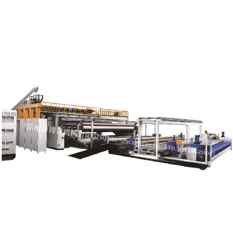 本系列機組主要用于土工膜、防水卷材、板材擠出成型,也可加入無紡布、土工布、編織布、網格布等進行土工復合膜片制品的生產。該系列包含平行列輥成型設備及豎輥壓延成型設備兩類。其中平行輥組設備適合較薄情形的成膜及淋膜復合,以及多種產品組合生產,可根據實際需要配置雙光面、單糙面、雙糙面一-機多用土工制品及淋膜復合、超薄膜生產,無需拆換輥。豎輥成型機組更適合厚型板片材成型/復合以及工藝需要在背面貼條掛帶的生產場合。鑄龍常年來對該系列設備不斷升級更新,目前設備具有優異的擠出效果、均勻的橫向薄厚、高性能的自動化系統。可以根據客戶實際需求定制行標設備、非標設備、試驗設備,并可按照實際生產所需定制功能。